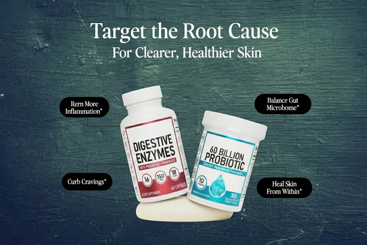 Targets the Root Cause: Supports your gut to reduce the inflammation and imbalances that trigger acne, dark spots, and recurring breakouts.