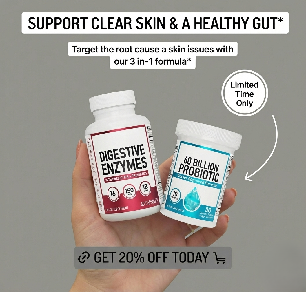 Targets the Gut–Skin Root Cause by supporting the gut–skin axis to calm inflammation and address the internal triggers behind acne and recurring breakouts.